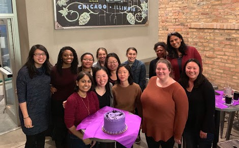 Angela Li and Stephanie Kirmer, both of R-Ladies Chicago, organized a women’s package workshop in February 2019 for 30 women at the Center for Spatial Data Science in Chicago. This marked the first time an R-Ladies group had run the full package development workshop. The workshop brought women from 11 states in the US to freezing-cold Chicago to learn how to develop their first package. The workshop was preceded by an R-Ladies get-together with an R-Ladies purple cake, where workshop participants from out-of-town were able to get to know each other.