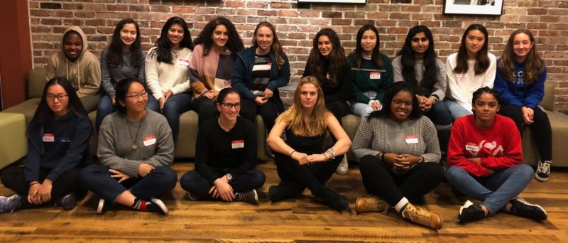 Emily Dodwell and Joyce Robbins taught the first Forwards high school girls workshop in the United States in October 2018 at AT&T in New York City. Sixteen motivated, curious, and dedicated students worked diligently throughout a morning session to tackle an introduction to R, plots in ggplot2, Markdown, and manipulating data with dplyr. Breakout groups over a lunch of pizza and salad discussed careers in data science; volunteers shared their career trajectories, and students asked questions and shared their experiences in high school STEM courses and extracurricular activities.