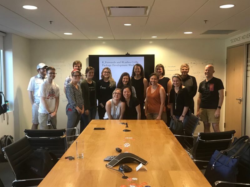 On September 8, 2019, Samantha Toet and Angela Li co-taught a 3-hour Forwards Package Development Workshop at a weekend R-Ladies Charlottesville Meetup.