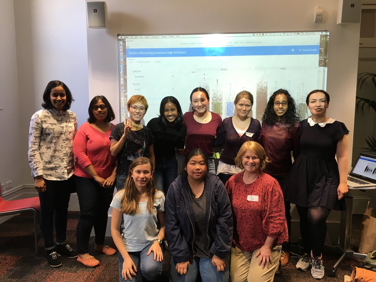The first girls R coding workshop was held at the Kathleen Symes library in Melbourne, Nov Oct 28, 2017. The girls learned about tidy data concepts, wrangling data tools, and built a shiny app to explore standardised test data from the 2015 OECD Programme for International Student Achievement. One of the apps developed can be viewed at https://t.co/zlw3HGzOaR.